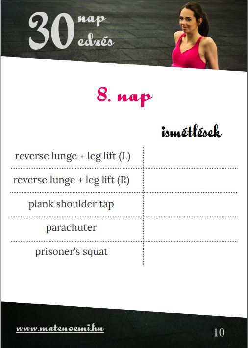 Ez egy olyan nyomtatható edzésterv, ami vizuálisan is kitűnik a többi edzéstervem közül, ezt nem én dizájnoltam, hanem aki ért is hozzá. Így lehetett szépen kinyomtatni és akár kis kártyákra vagdosni a napi edzéstervet, pipálni vagy ismétlésszámokat írni a gyakorlatokhoz. Minden gyakorlathoz készült egy fotós-szöveges instrukció, hogy ne csak tippelgessetek, mit is kell csinálni. Minden gyakorlat neve kattintható a PDF-ben, ezért nem kell órákig görgetni, hogy megtudd, merre is kell mozdulni.
